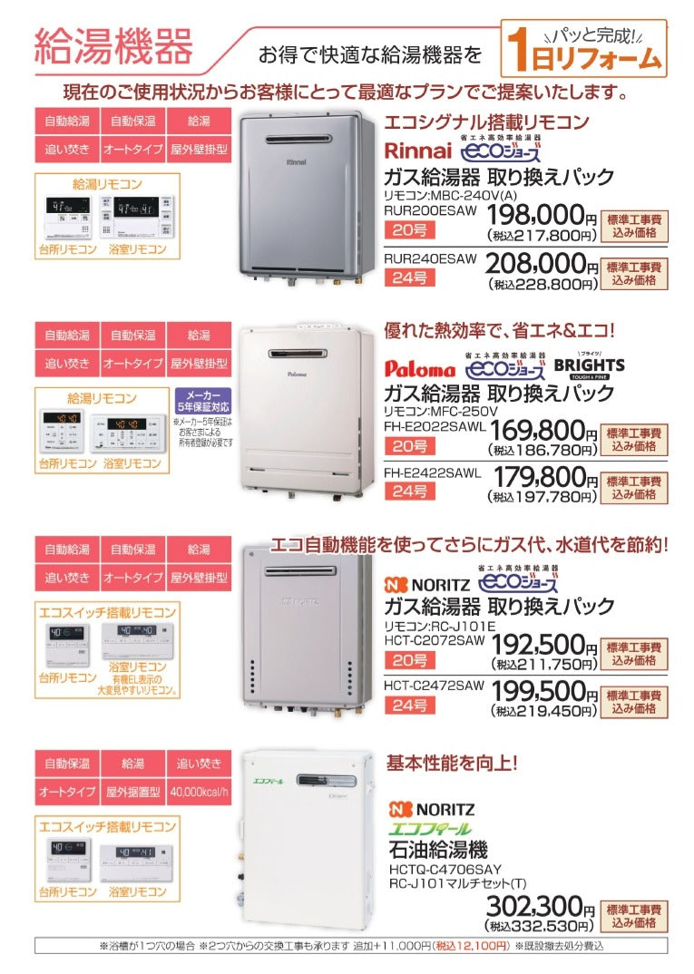 当社での対応は、主に給湯器本体の交換となります。